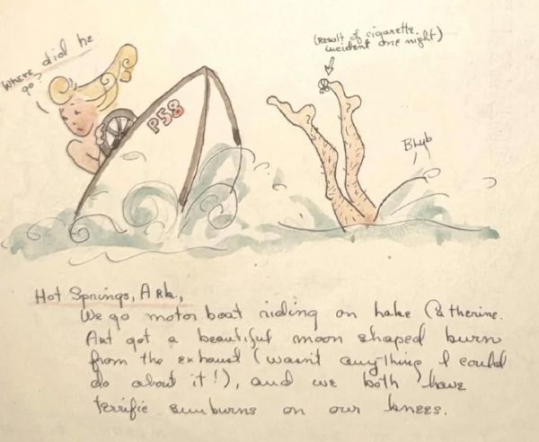 Redditor Ok_Illustrator_8711 never met his grandmother, yet he got a glimpse of her personality from a diary she kept from the days when she married his grandpa. The entries are wonderful cartoons she drew of her life events. He shared a few pages from it that start with "Pre-Marital Chaos" as she planned their wedding. They honeymooned in Hot Springs, Arkansas.
